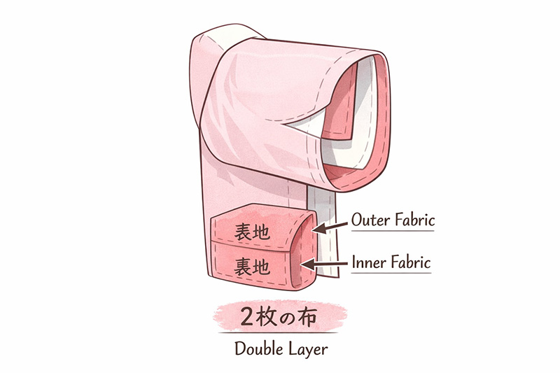 また世界大百科事典内の解説では、近年の袷長襦袢においては、袖は無双袖、裾は引返し裾としつつ、胴を単仕立てにする折衷方式が広がったと記載があります。